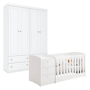 Berço Multifuncional Atlanta e Guarda Roupa 4 Portas Americano Branco Fosco Henn - Reller