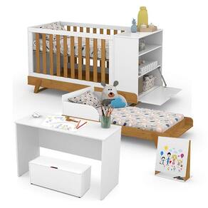 Berço Multifuncional Bkids Branco Freijó Eco Wood - Matic e Cômoda Infantil Americano Branco HP - Henn