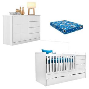Berço Multifuncional Cleo com Cômoda Blenda Branco Acetinado e Colchão Phoenix