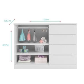 - 02 Prateleiras auxiliando na organização das roupas e acessórios do bebê