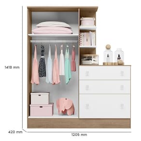 Guarda Roupa com Cômoda Doce Sonho Carvalho Rústico TOQ Branco – Qmovi