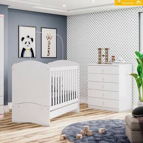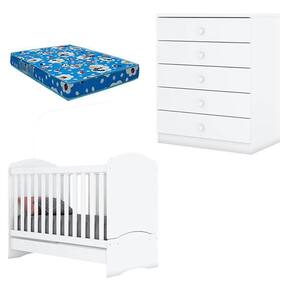 Berço Nacional Bala de Menta e Cômoda Infantil Bala de Menta Branco com Colchão Ortobom Henn