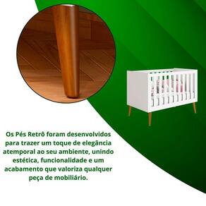 Os pés em madeira garantem estabilidade e firmeza ao móvel, enquanto as grades fixas proporcionam segurança e tranquilidade no dia a dia.