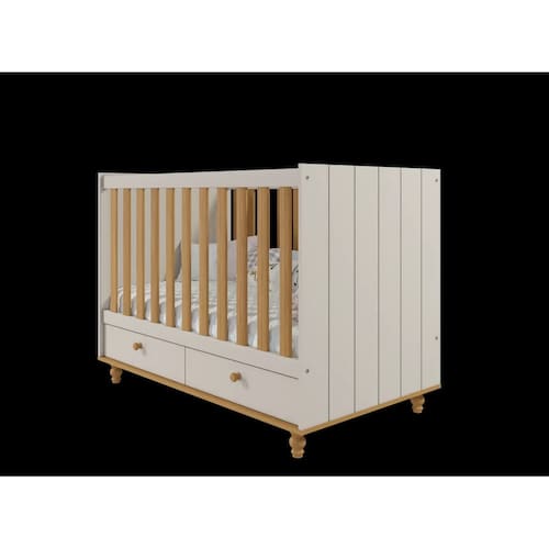 Seguindo linhas mais retas, esse berço combina com qualquer estilo decorativo. As cabeceiras possuem baixo relevos com acabamento em laca, um detalhe que faz toda a diferença. Possui 2 gavetões com corrediças telescópicas com bastante espaço interno para organização de roupas de cama, brinquedos, roupinhas, fraldas e etc. Os puxadores e pés são torneados em madeira maciça e conferem um charme especial ao produto. A base do produto é inteiriça, o que proporciona maior resistência e estabilidade. Fabricado com matéria-prima 100% MDF, um material ecologicamente correto e de ótima durabilidade e resistência. É um produto sinônimo de SEGURANÇA, pois é fabricado conforme as normas exigidas pela ABNT e certificado pelo INMETRO (Certificaçao Compulsória de segurança INMETRO). O estrado é fabricado com barrotes de madeira e base de MDF 6mm. As ferragens para sua fixação ficam ocultas e assim a cabeceira não fica cheia de furos e parafusos aparentes. Possui 2 regulagens de altura (uma mais alta para quando o bebê ainda é bem novinho e outra mais baixa para quando o bebê já se movimenta e consegue ficar sentado). Atenção para a altura do colchão que não pode passar de 12cm. As bordas são todas arredondadas e recebem pintura em lacca com tinta atóxica e as peças retas recebem pintura UV também com tinta e verniz atóxicos. Esse berço não possui suporte para cortinado incluso. Recomendamos que seja utilizado suporte de parede ou de teto.