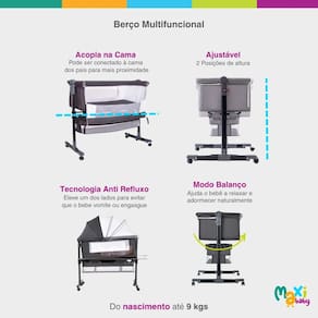 Outro grande diferencial é sua função berço com balanço, que transforma o produto em uma cama que embala o bebê suavemente, ajudando-o a adormecer com tranquilidade.