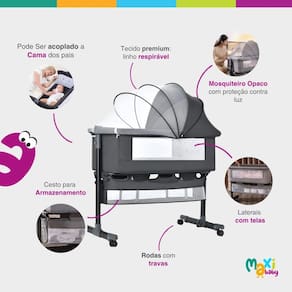 O modelo possui altura ajustável em dois níveis, adaptando-se ao crescimento da criança e às diferentes necessidades dos pais, como o modo de alimentação variável. Além disso, pode ser acoplado à cama dos pais, oferecendo mais proximidade durante a noite e facilitando a amamentação e o cuidado com o bebê.