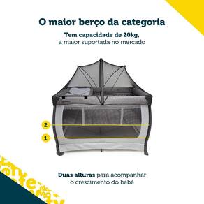 Características: Capacidade: Suporta até 20 kg, a maior do mercado. Duas Alturas Ajustáveis: Acompanha as diferentes fases de crescimento do bebê. Fechamento Automático: Fácil e rápido, ideal para a correria do dia a dia. Entrada Montessoriana: Facilita o acesso e interação com o bebê. Mosquiteiro Arcado: Com abertura central para retirar o bebê sem complicações. Trocador Acoplado: Praticidade em um único produto. Rodas Integradas: Para um deslocamento fácil dentro de casa. Bolsa de Transporte: Perfeita para levar o berço em viagens. Bolso Lateral: Mantém os itens essenciais sempre à mão.
