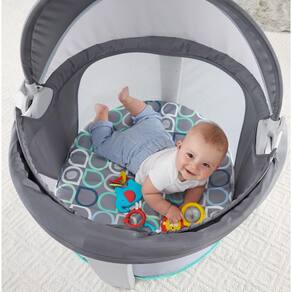 Berço portátil Fisher-Price On-The-Go Baby Dome, espaço para viagens e recreação com brinquedos e dossel para recém-nascidos, bolhas cinzentas
