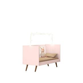 Berço Qmovi Encanto Retro Rosa O Berco com Mini Cama Q Encanto Retro, foi desenhado com todo o cuidado para garantir a seguranca e conforto do bebe. Com um design moderno e da linha Retro, o movel deixara o ambiente ainda mais charmoso e aconchegante. O berco ainda pode ser montado como mini cama, para acompanhar o crescimento da crianca. Caracteristicas: Possui certificacao Inmetro: Sim Berco Padrao Americano: 70 cm Estrado regulavel em tres alturas: 1: 355 milimetros, 2: 483 milimetros, 3: 611 milimetros (altura do estrado em relacao a borda superior da grade). Possibilidade: de ser transformado em mini cama para acompanhar o crescimento do seu filho Pes incluso na embalagem para evitar o contato do produto com o chao; Acompanha suporte para mosquiteiro: que garante noites tranquilas e seguras, sem picadas de mosquitos e incomodos; Estrado: MDF de 6mm e travessas em MDF de 25mm; Grades: fixas feitas em MDF de 12mm e 25mm, para to