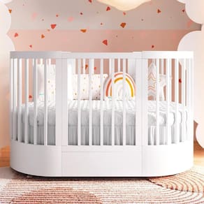 Com três opções de uso, o design contemporâneo do Berço Redondo Mel Wave traz uma proposta que renova o visual do quarto de bebê e que apresenta uma tendência contemporânea para compor o ambiente. Com rodízios de silicone gel que facilitam a movimentação pelo espaço, apresentamos uma composição que foge do óbvio e que vai acompanhar o crescimento da criança, já que o berço se transforma em berço, mini berço e mini cama. Ideal para as famílias que buscam investir em móveis com funcionalidade e design com um toque moderno para o quarto de bebê. Confira todos os detalhes: