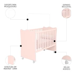 O Berço Simples Com Rodízios Doce Sonho Rosa, da Qmovi é uma ótima escolha para pais que buscam praticidade e conforto.