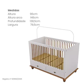 O Berço Mini Cama Joy é a escolha perfeita para garantir o conforto e a segurança do seu bebê. Com design moderno, se adapta a qualquer estilo de quarto infantil.Base de madeira maciça reflorestada, com espessura de 25cm; frentes de gaveta em baixo relevo; acabamento laca; pintura atóxica; ferragens padrão ouro velho envelhecido; pés robustos e torneados de madeira maciça; três regulagens de altura do estrado, transforma-se em mini cama. Cada curva, cada detalhe, é um compromisso com a beleza e a responsabilidade ambiental. Uma peça que une a elegância da natureza à sustentabilidade, tornando seu espaço mais bonito e o planeta mais verde. Um móvel perfeito para o quarto do bebê, que alia conforto, qualidade e durabilidade. Acabamento: Pintura UV Acabamento da Gaveta: Pintura Acabamento dos Pés: Pintura Acompanha Cama Auxiliar: Não Acompanha Dossel: Não Acompanha Móbile: Não Acompanha Suporte para Mosquiteiro: Sim - Sem Véu Altura: 96 cm Altura do Estrado até o Chão: 10 cm Altura dos Pés: 10,5 cm Ambiente Principal: Quarto de Bebê Berço 3 em 1: Não Certificação Inmetro (Código): 1650 Certificado: INMETRO – 001650/2025 codigo_ean: 7900288255914 Complexidade da Montagem: Média: pode ser montado por mais de uma pessoa e/ou necessite de maior conhecimento para montagem Cor: Off White/Nogueira Cor do Produto: Off White/Nogueira Escala de Brilho: Semi-Brilho Escala de Brilho da Gaveta: Semi-Brilho Espaço Entre as Barras das Grades: 5,1 cm Estilo: Rústico Estrado com Regulagem de Altura: Sim Estrado Regulável em Quantas Posições: 03 Gaveta com Chave: Não Itens Inclusos: 1 Berço, Manual de instruções e Kit Ferragens Largura: 79,5 cm Linha ou Coleção: Joy Manual de Montagem e Instalação: https://product-hub-prd.madeiramadeira.com.br/218653957/documents/8cd82487-9dc3-4818-8a86-d5b5835c423ebc14c05131179b6b1755020181.pdf Marca: Móveis Serpil Material da Cabeceira: MDF Material da Gaveta: MDF Material da Grade: pinus/mdf Material do Estrado: MDF Material do Puxador da Gaveta: Metal Material dos Pés: Madeira Maciça Material Principal: MDF Multifunção Flex: Multifunção Flex Necessita Montagem: Sim Opções de Altura do Estrado: 352,5; 453; 553 Origem do Produto: Nacional Permite a Utilização de Cama Auxiliar: Não Peso: 55 kg Peso Máximo por Gaveta: 7 kg Pintura Atóxica: Sim Portátil: Sim Possui Capitonê: Não Possui Gavetas: 02 Possui Pés: 04 Possui Portas: Não Possui Prateleiras: Não Profundidade: 138,5 cm Recomendações de Uso, Manutenção e Limpeza: Use um pano macio levemente umedecido. Não utilizar produtos abrasivos. Sapatas Niveladoras: Não Sistema Anti-Refluxo: Não Sistema de Montagem: Parafusos, cavilhas e hastes. Suporta Até (kg): 25 kg Tamanho do Colchão Indicado (L x C): 130x070x012 Tipo de Berço: Berço Mini Cama Tipo de Cabeceira: Lisa Tipo de Corrediça da Gaveta: Metálica Telescópica Tipo de Estrado: Removível Tipo de Grade: Móvel Tipo de Madeira Maciça dos Pés: Pinus Tipo de Puxador da Gaveta: Externo