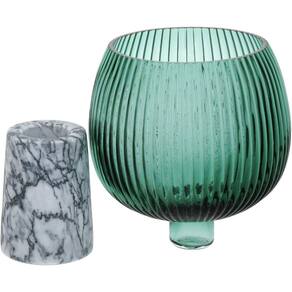 Ele é fabricado com vidro que possui alto relevo na superfície externa. Possui a base em mármore onde o bojo de vidro se encaixa perfeitamente dando uma excelente estabilidade.