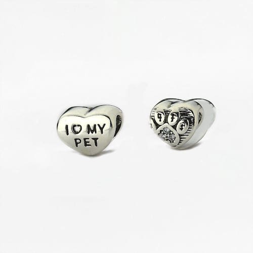 Berloque Bali Espaçador Coração I Love My Pet Com Pata Cravejado Cristal -
