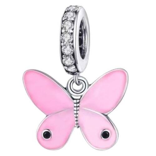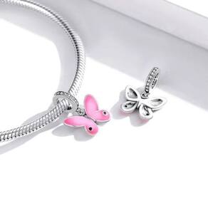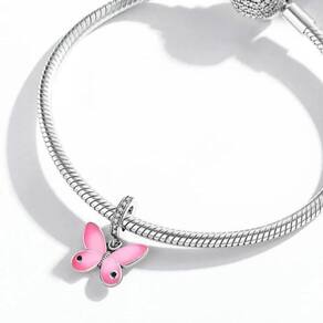 Berloque borboleta rosa pingente joia prata 925 animais