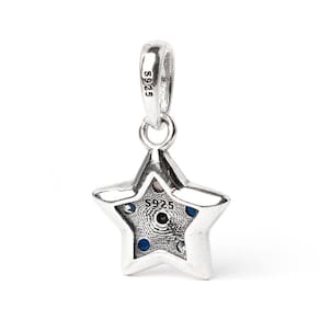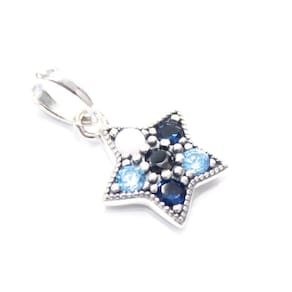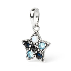 Muito luxo e brilho para a sua coleção, berloque estilo pendente em formato de estrela cravejado com lindas zircônias, fabricado em Prata 925. Não se engane com materiais folhados e banhados. Acabamento e polimento manuais. Material: Prata 925 e Zircônia. Cor: Prata e Azul. Medidas aproximadas: 22mm de altura x 13mm de largura. Compatível com todas as pulseiras. Marca: Mundo Briller Ean: 5293551942881