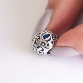 Berloque espaçador Arabesco com gota Azul Prata 925