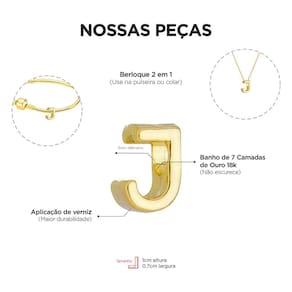 MODELO: Berloque de Letra J banhado com 7 milésimos de ouro 18k.