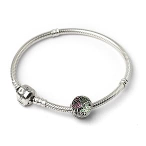 O Berloque Separador Flamingo é composto em Prata 925 e dessa forma a peça não descasca, ao contrário dos materiais folheados e banhados. A beleza e o charme do flamingo chegou para transformar a sua coleção. As cores são vibrantes e tem brilhos por toda a volta. Os desenhos vazados dão mais leveza à peça. Ambos os lados são iguais. O berloque é composto por um flamingo todo cravejado por zircônias roxas e uma de suas pernas se encontra dobrada, na clássica posição da ave. A sua volta, coqueiros cravejador por zircônias verdes preenchem o espaço, transformando o berloque em uma linda cena tropical.