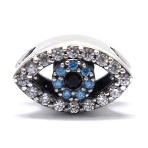 Especificações técnicas Marca: Mundo Briller Modelo: Separador Olho Grego Material: Prata 925 E Zircônias Cor: Prata, azul e preto Medida aproximada: 10mm x 6mm