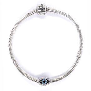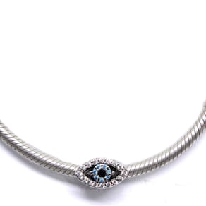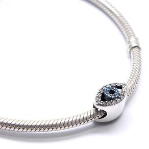 O Berloque Separador Olho Grego é composto em Prata 925 e dessa forma a peça não descasca, ao contrário dos materiais folheados e banhados. O berloque Olho Grego é fabricado no tom azul perfeito. Além de afastar o mau-olhado ele representar o olhar de Deus que ilumina e protege as pessoas. Com um design leve e repleto de Zircônias em ambos os lados é uma peça brilhante e delicada, transmitindo a sensação de paz.