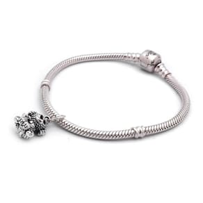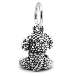 A delicadeza em forma de berloque O Berloque Pingente Cachorrinho Poodle é adorável. O seu rostinho amigável, é destacado pelos seus olhos e nariz pintados em esmalte preto. As suas patinhas são super fofas, que dão vontade de morder. Sem esquecer claro do seu rabinho que não ficou de fora do design. Ele está sentadinho, com uma coleira com uma plaquinha de identificação em forma de coração no pescoço. O seu passador é em prata lisa, deixando todo o destaque para a peça. Por ele ser estilo pingente, é ideal para ficar entre dois separadores. Imagina ele combinado com outros berloques com o tema pet O Berloque Pingente Cachorrinho Poodle é fabricado em Prata 925, por isso a peça não descasca. O acabamento e polimento são feitos manual e individualmente, revelando todo o cuidado que temos com cada detalhe. Assim, não se engane com materiais folheados e banhados. Esse berloque é compatível com todos as pulseiras do mercado. No entanto, caso ainda tenha dúvidas, basta medir a espessura da sua pulseira. O passador desta peça tem 4,5mm de diâmetro. Material: Prata 925. Cor: Prata. Medidas aproximadas: 20mm de altura x 10mm de largura. Passador com 4,5mm de diâmetro. Compatível com todas as marcas tradicionais de pulseiras de berloques. Marca: Mundo Briller Ean: 7805876072181