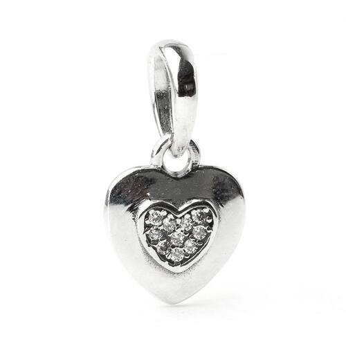 Uma peça básica e por ser mais discreta é super fácil de combinar na sua coleção. Berloque estilo pendente em forma de coração possui um coração no centro formado por Zircônias, dando um toque a mais de romantismo. Esse berloque sem dúvidas vai te encantar é muito delicado e fabricado em Prata 925. Não se engane com materiais folheados e banhados. Acabamento e polimento manuais. Material: Prata 925 e Zircônias. Cor: Prata. Medidas aproximadas: 15mm de altura x 10mm de largura. Compatível com todas as pulseiras. Marca: Mundo Briller Ean: 7899057812604