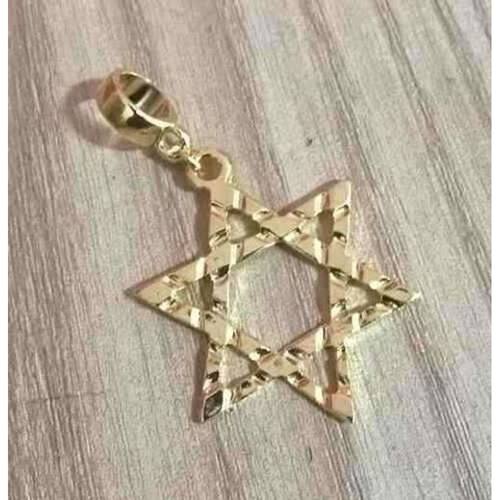 Berloque Pingente Estrela De Davi Com Detalhe Folheado Ouro