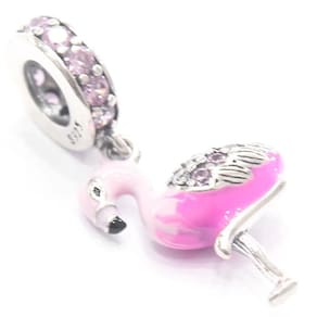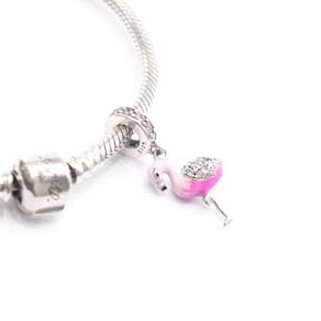 A tendência que não pode faltar na sua pulseira O Berloque Pingente Flamingo é perfeito para representar o clima tropical e o verão, além de ser tendência da estação. O flamingo é esmaltado em dois tons de rosa: um rosa claro que vai do bico até o final do pescoço, e um escuro, que cobre toda parte de baixo da ave. Os tons de rosa, típicos do flamingo, trazem um ar romântico e alegre para a peça. Além disso, a plumagem da asa do flamingo é colorida por pedrinhas de zircônia rosa claro e cristal. Os detalhes, como no bico, olhos e penas, trazem todo um encanto para o berloque. As pernas prateadas em diferentes posições, uma dobrada e a outra esticada, traz toda a graciosidade para a peça. E para deixar esse berloque ainda mais elegante, seu passador prateado é todo cravejado com pedrinhas de zircônia rosa claro. O berloque é igual de ambos os lados. Ouse nas combinações e deixe sua pulseira incrível com esse berloque Por ele ser estilo pingente fica lindo entre dois separadores.. O acabamento e polimento são feitos de forma manual e individual, revelando todo o cuidado que temos com cada detalhe. Portanto, não se engane com materiais folheados e banhados. Esse berloque é compatível com todas as pulseiras do mercado. No entanto, caso ainda tenha dúvidas, basta medir a espessura da sua pulseira. O passador desta peça tem 4,5mm de diâmetro. Material: Prata 925, Zircônias e esmalte. Cor: Prata, rosa, rosa claro e preto. Medidas: 26mm de altura x 13mm de largura. Passador com 4,5mm de diâmetro. Compatível com todas as marcas tradicionais de pulseiras de berloques. Marca: Não Informado