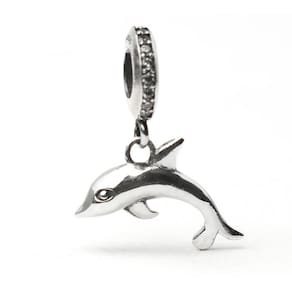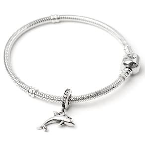 Represente a alegria e inteligência desse bichinho em sua coleção. Berloque estilo pendente em formato de golfinho, fabricado em Prata 925. Não se engane com produtos folheados. Acabamento e polimento manuais. Material: prata 925. Cor: prata. Medidas aproximadas: 17mm de altura x 16mm de largura. Compatível com todas as pulseiras. Marca: Não Informado
