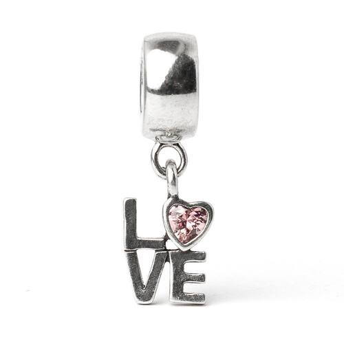 Represente o amor na sua coleção. Berloque estilo pendente com palavra Love fabricado em prata 925 com pedra de Zircônia. Não se engane com produtos folheados. Acabamento e polimento manuais. Material: Prata 925 e Zircônia. Cor: Prata e rosa. Medidas aproximadas: 20mm de altura x 7mm de largura. Compatível com todas as pulseiras. Marca: Mundo Briller Ean: 7899057813427