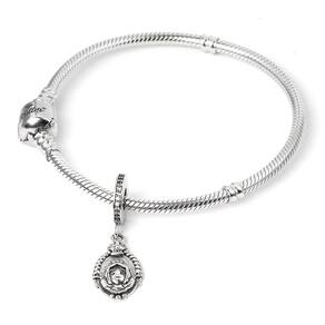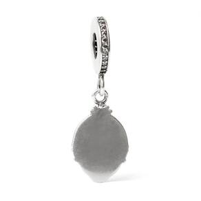 Material: prata 925 e Zircônias. Cor: prata e branco. Medidas aproximadas: 30mm de altura x 10mm de largura. Compatível com todas as pulseiras. Marca: Mundo Briller Ean: 7807108853520