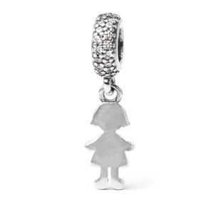Como um desenho infantil, essa menininha sorri docemente com o seu vestidinho rosa. O passador com diversas Zirconias deixam a peça mais encantadora. Represente aquela criança especial na sua coleção. Berloque estilo pendente é fabricado em Prata 925 e esmalte. Não se engane com materiais folheados e banhados. Acabamento e polimento manuais. Material: Prata 925 e esmalte. Cor: Prata, rosa e preto. Medidas aproximadas: 25mm de altura x 3mm de largura. Compatível com todas as pulseiras. Marca: Não Informado