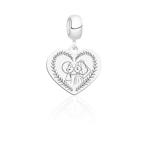 Berloque Pingente Noivos é fabricado em Prata 925, por isso a alta qualidade. O acabamento e polimento são feitos manual e individualmente, revelando todo o cuidado que temos com cada detalhe. Assim, não se engane com materiais folheados e banhados. Essa peça é compatível com todos as pulseiras do mercado. No entanto, caso ainda tenha dúvidas, basta medir a espessura da sua pulseira. O passador desta peça tem 4,5mm de diâmetro. Material: prata 925 e detalhes a laser. Cor: prata. Medidas aproximadas: 12,5mm de altura x 11mm de largura x 1mm de espessura. Vão do passador com 4,5mm de diâmetro. Compatível com todas as marcas tradicionais de pulseiras de berloques. Marca: Mundo Briller Ean: 7893651940336