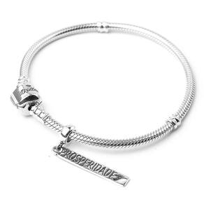 Um berloque para atrair muita prosperidade A prosperidade normalmente está relacionada a abundância de bens e riquezas materiais, mas também pode ser relacionada ao comportamento emocional, ao equilíbrio mental e espiritual das pessoas. O berloque Plaquinha Prosperidade é estilo pendente e possui uma plaquinha de formato retangular com a palavra prosperidade em baixo relevo. Ao final da plaquinha, o formato de um peixe vazado vem para simbolizar ainda mais o conceito de prosperidade e deixar a peça ainda mais deslumbrante. O passador e o verso desta peça são lisos e prateados, deixando todo o foco para a frente do berloque. Se você deseja atrair algum tipo de prosperidade em sua vida, não deixe faltar este berloque na sua coleção Por ele ser estilo pingente fica lindo entre dois separadores... O acabamento e polimento são feitos de forma manual e individual, revelando todo o cuidado que temos com cada detalhe. Portanto, não se engane com materiais folheados e banhados. Esse berloque é compatível com todas as pulseiras do mercado. No entanto, caso ainda tenha dúvidas, basta medir a espessura da sua pulseira. O vão do passador desta peça tem 4,5mm de diâmetro. Material: Prata 925. Cor: Prata. Medidas aproximadas: 35mm de altura x 05mm de largura. Passador com vão de 4,5mm de diâmetro. Compatível com todas as marcas tradicionais de pulseiras de berloques. Marca: Mundo Briller Ean: 7805876022148