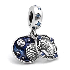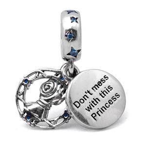 . Um vazado e o outro solido.O primeiro é formado por desenhos vazados. Nele podemos ver a princesa Leia de perfil com aparência sóbria, ela usa o seu vestido clássico, de gola alta e os cabelos em dois coques laterais. Ela esta perfeitamente enquadrada em uma borda com ornamentada com quatro brilhos azuis. Já o segundo disco é solido. Na frente, é possível ver a Estrela da Morte surgindo no lado direito, pronta para atirar no planeta Alderaan à distância, à esquerda. No fundo, três estrelas de prata brilham rodeadas por esmalte azul cintilante. Na parte de trás do disco está gravado com a mensagem em inglês: 'Não mexa com esta princesa'. Incrivelmente os detalhes não param por aí, já que o passador é decorado com lindas estrelas em baixo relevo preenchidas com Zircônias azuis claras. Realmente uma explosão de cuidado.. E que tal combiná-lo com outros berloques da série O Berloque Pingente Princesa Leia é fabricado em Prata 925, por isso a peça não descasca. O acabamento e polimento são feitos manual e individualmente, revelando todo o cuidado que temos com cada detalhe. Assim, não se engane com materiais folheados e banhados. Esse berloque é compatível com todos as pulseiras do mercado. No entanto, caso ainda tenha dúvidas, basta medir a espessura da sua pulseira. O passador desta peça tem 4,5mm de diâmetro. Material: Prata 925, esmalte e Zircônia. Cor: Prata e azul. Medidas aproximadas: 23mm de altura x 10mm de largura. Passador com vão de 4,5mm de diâmetro. Compatível com todas as marcas tradicionais de pulseiras de berloques. Marca: Mundo Briller Ean: 7805875540629