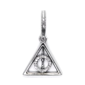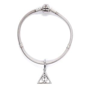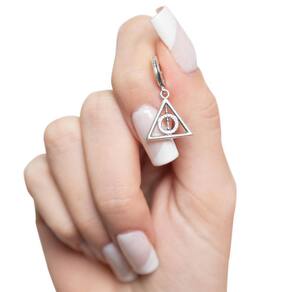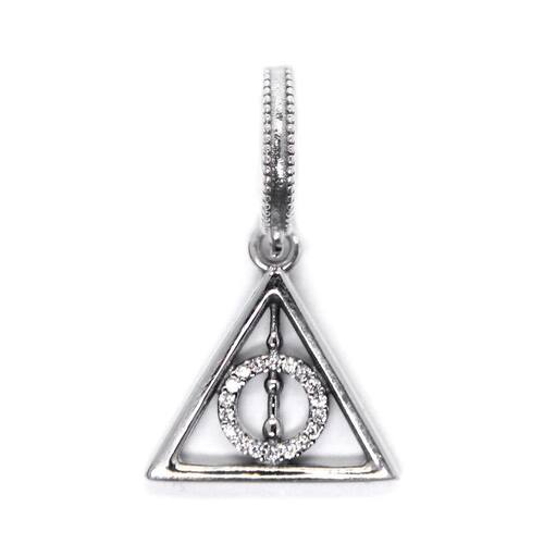 Os três objetos ícones do filme Harry Potter em um mesmo berloqueA união da Varinha das Varinhas, com a Pedra da Ressurreição e a Capa da Invisibilidade formam um design cheio de magia. A Varinha das Varinhas é a linha reta, a Pedra da Ressurreição o círculo e a Capa da Invisibilidade o triângulo. O toque do brilho das Zircônias completa esse amuleto assim como os detalhes em baixo e alto relevo do passador.Por ele ser estilo pingente fica lindo entre dois separadores. Imagina ele combinado com outros berloques do filmeO Berloque Pingente Relíquias Da Morte - Harry Potter é fabricado em Prata 925 por isso a peça não descasca. O acabamento e polimento são feitos manual e individualmente, revelando todo o cuidado que temos com cada detalhe. Assim, não se engane com materiais folheados e banhados.Esse berloque é compatível com todos as pulseiras do mercado. No entanto, caso ainda tenha dúvidas, basta medir a espessura da sua pulseira. O passador desta peça tem 4,5mm de diâmetro.Material: Prata 925 e Zircônia.Cor: Prata.Medidas aproximadas: 28mm de altura x 15mm de largura. Passador com 4,5mm de diâmetro.Compatível com todas as marcas tradicionais de pulseiras de berloques. Marca: Mundo Briller