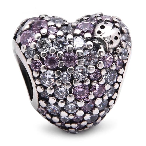 Um jardim encantado em formato de coração com uma delicada joaninha. A combinação entre o cristal e o roxo dá leveza a este berloque encantador. Berloque estilo separador fabricado em Prata 925 com Zircônia. Não se engane com materiais folheados e banhados. Acabamento e polimento manuais. Material: Prata 925 e Zircônia. Cor: Prata e roxo. Medidas aproximadas: 12mm x 11mm de largura. Compatível com todas as pulseiras. Marca: Mundo Briller Ean: 7899057812925