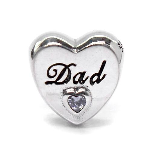 Ele sempre será nosso herói e não pode faltar a representação do nosso amor e admiração por ele na nossa coleção. Berloque em formato de coração com a inscrição DAD e coração em Zircônia. Fabricado em Prata 925.Não se engane com materiais folhados e banhados. Acabamento e polimento manuais. Material: Prata 925 e Zircônia. Cor: Prata. Medidas aproximadas: 9mm de altura x 10mm de largura. Compatível com todas as pulseiras. Marca: Mundo Briller Ean: 7893651194067
