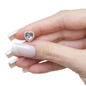 Berloque estilo separador com um coração de zircônia transparente parte central e zircônias no contorno. Não se engane com materiais folheados e banhados. Acabamento e polimento manuais.