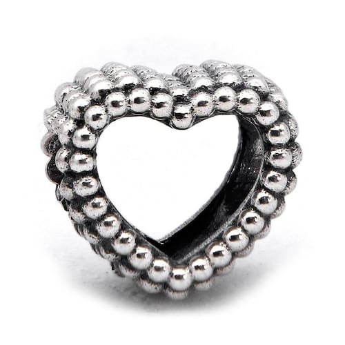 Este berloque em formato de coração é todo coberto por contas de prata, transformando um berloque simples em uma peça sofisticada. Este coração vazado é fabricado em Prata 925. Não se engane com materiais folheados e banhados. Acabamento e polimento manuais. Material: Prata 925. Cor: Prata. Medidas aproximadas: 10 mm de altura x 10mm de largura. Compatível com todas as pulseiras. Marca: Mundo Briller Ean: 7899057813229