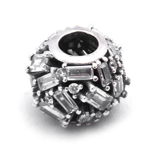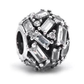 Berloque estilo separador com cristais fabricado em prata 925 e pedras de Zircônia, muito delicado. Não se engane com materiais folheados e banhados. Acabamento e polimento manuais. Material: Prata 925 e Zircônia. Cor: Prata. Medidas aproximadas: 10mm de altura x 8mm de largura. Compatível com todas as pulseiras. Marca: Mundo Briller Ean: 7899057812369