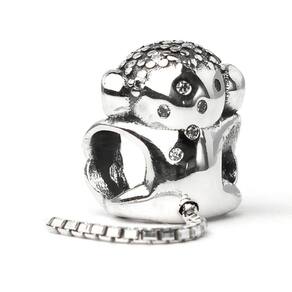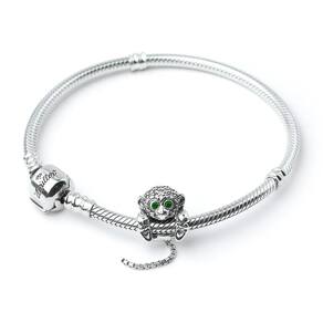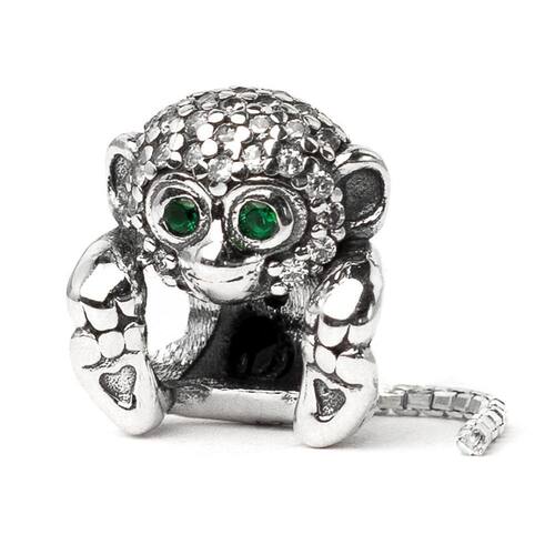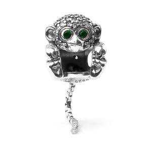 Represente o seu lado divertido com esse macaquinho com a cauda pendurada. O passador da pulseira é formado , porque ele segura os próprios pés Ele é cheio de detalhes encantadores, como os seus olhos brilhantes em Zircônia verdes e os corações em baixo relevo na parte inferior dos pés. Sua cauda de cobra comprida balança, assim como ele gira em torno da pulseira. A cabecinha dele é toda decorada com Zircônias e se espalham pelas costas. Uma combinação incrível de detalhes bem trabalhados Não se engane com materiais folheados e banhados. Acabamento e polimento manuais. Material: Prata 925 e Zircônia. Cor: Prata e verde. Medidas aproximadas: 30mm de altura x 11mm de largura. Compatível com todas as pulseiras. Marca: Mundo Briller Ean: 7899057813281