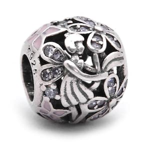 Eternize os seus sonhos e desejos com o separador Minha Fada. Berloque estilo pavê com fada, borboletas e flores fabricado em Prata 925, com Zircônias cravejadas e detalhes esmaltados. não se engane com materiais folheados e banhados. Acabamento e polimento manuais.