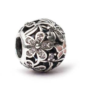 Material: Prata 925, detalhes esmaltado e Zircônias transparentes. Cor: Prata, branco e rosa. Medidas aproximadas: 11mm de altura x 9mm de largura. Compatível com todas as pulseiras. Marca: Mundo Briller Ean: 7807108833966