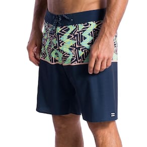 Bermuda Billabong feita em tecido com tecnologia 4 Way Stretch reciclado, derivado de garrafas pet, repelente á água, secagem rápida, o Airlite apresenta três tecidos de desempenho exclusivos perfeitamente projetados em um para oferecer estabilidade, flexibilidade e conforto, recorte no quadril com estampa exclusiva da coleção, bolso lateral com patch bordado acima, fechamento em zíper e patch de logotipia bordado na perna.