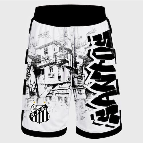 A Bermuda do Santos com estampa personalizada é um produto oficial licenciado, perfeito para os torcedores do time que buscam mostrar sua paixão pelo clube de forma estilosa e autêntica.