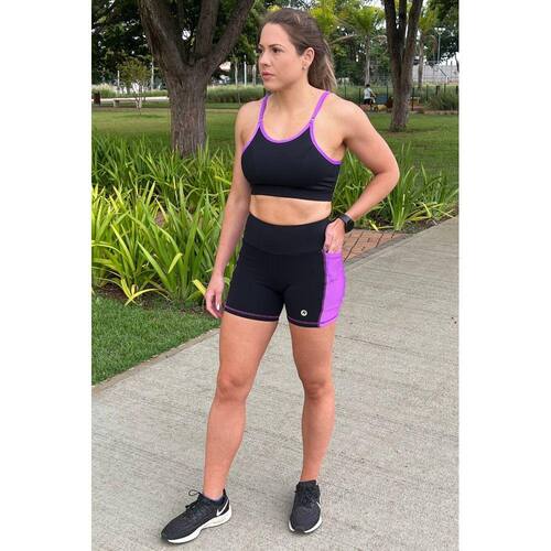 Cintura alta e com elástico interno que asseguram melhor estabilidade da roupa durante seus movimentos