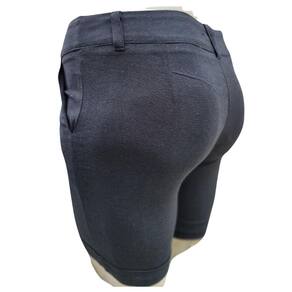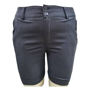 Bermuda feminina de tecido com linho, corte alfaiataria, comprimento meia-coxa. Modelo bom para ocasiões sociais ou casuais.