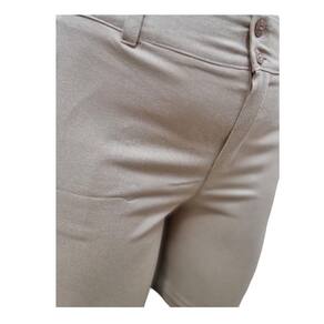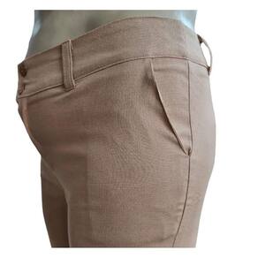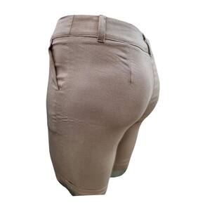 Bermuda feminina de tecido com linho, corte alfaiataria, comprimento meia-coxa. Modelo bom para ocasiões sociais ou casuais.